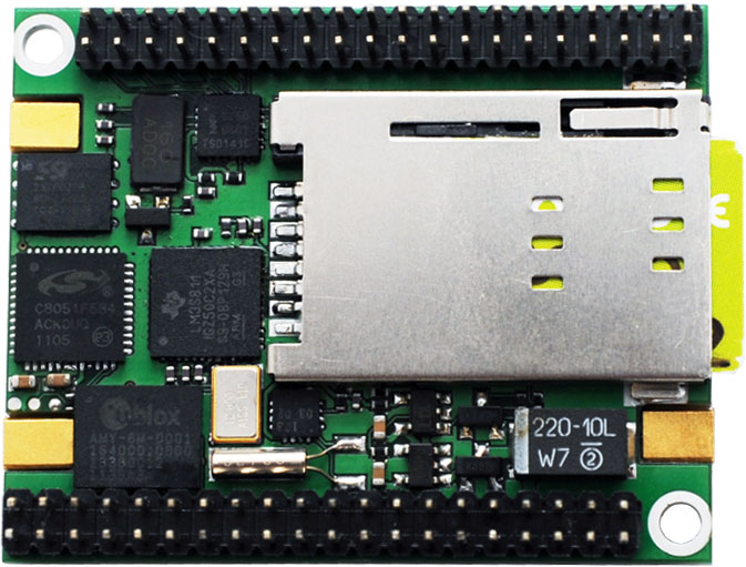 | I/O | 80 Pin dual-row, 2 mm pitch. 4 pull-down output. 4 configurable I/O. 1 Bi-stable Relay control. 1 RTS/CTS UART. 1 headset audio GSM output. 1 CAN-bus for direct intefacing with vehicles. 1 J-bus -J1708 (RS485). Aditional full pin-out configuration of the Application MCU (ADC, PWM, UART, SPI). |